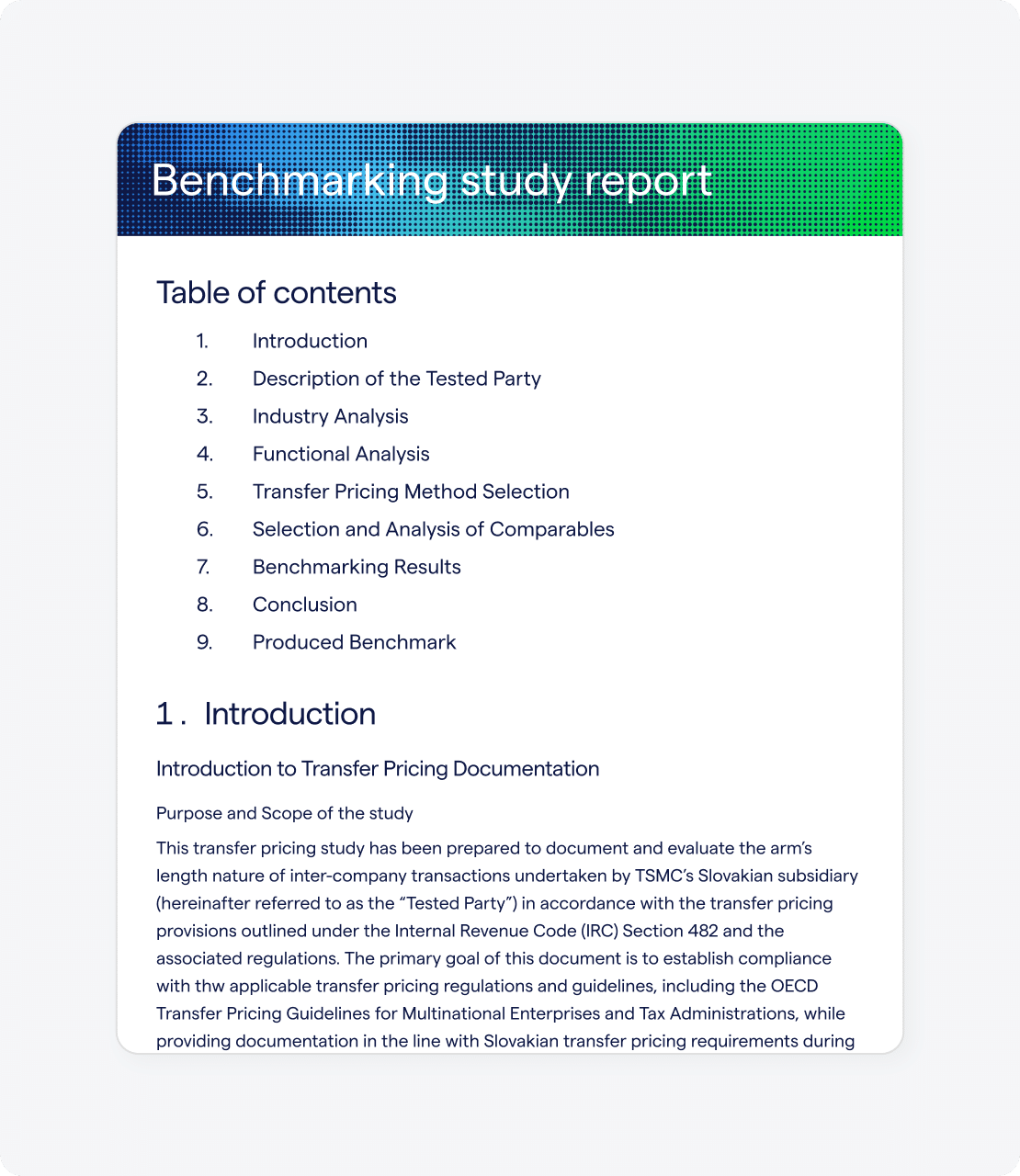 A complete, expert-grade benchmarking report is generated automatically in minutes, including: