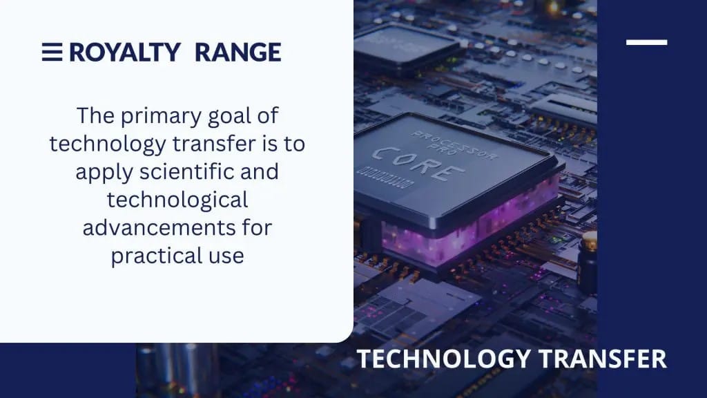 - Example: When a technology developed by a research institution is transferred to a commercial manufacturing company for the production and distribution of a product.