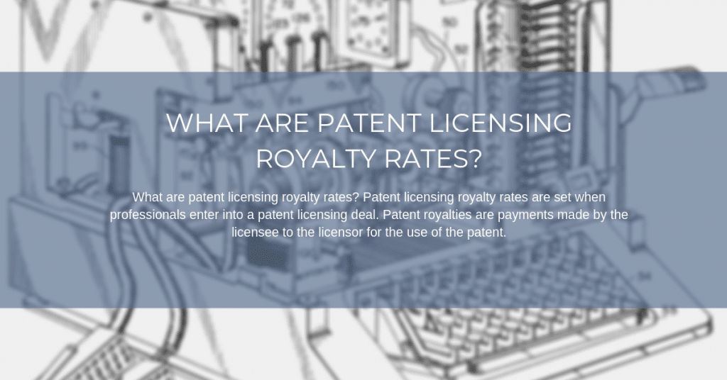 What are patent licensing royalty rates? Patent licensing royalty rates are set when professionals enter into a patent licensing deal. Patent royalties are payments made by the licensee to the licensor for the use of the patent. They are usually a percentage of the revenue generated by the patent, although they can sometimes be agreed as a fixed fee. The whole point of patent royalty rates is to ensure that the inventor is fairly compensated for the use of their intellectual property.