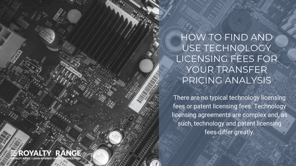 If you need to find technology licensing fees for your transfer pricing analysis, search the RoyaltyRange database today. You can use our royalty rates database on a one-off basis with our One Search option, which youâll find below. Simply enter your keywords into the search bar below to get started â for example, âtechnology licensing fees, automotiveâ.
