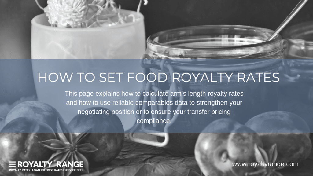 When you license your food-related intellectual property, you need to set royalty rates. This page explains how to calculate arm’s length royalty rates and how to use reliable comparables data to strengthen your negotiating position or to ensure your transfer pricing compliance. We also provide some average food royalty rates that you can use for your analysis or transfer pricing documentation.