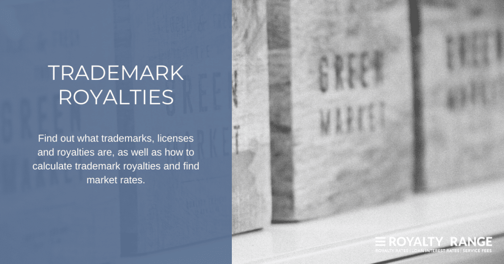 Finding market trademark royalties is quick and easy with the RoyaltyRange database. All you have to do is tell us your search criteria, and weâll produce a full report of trademark royalties for you. We only include potentially comparable license agreements in your report, so you can confidently use them for intellectual property licensing, valuation and transfer pricing purposes.